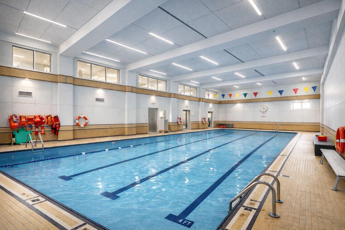 Designed as a fully inclusive and accessible hub, the Sports Center integrates a professional ice rink, multi-sport arena, modern fitness and training facilities, and an indoor swimming pool—creating a unified destination for athletic excellence, youth development, and everyday community wellness. Large-span structures, naturally lit interiors, and efficient circulation systems ensure the building performs at both competitive and public-use standards.